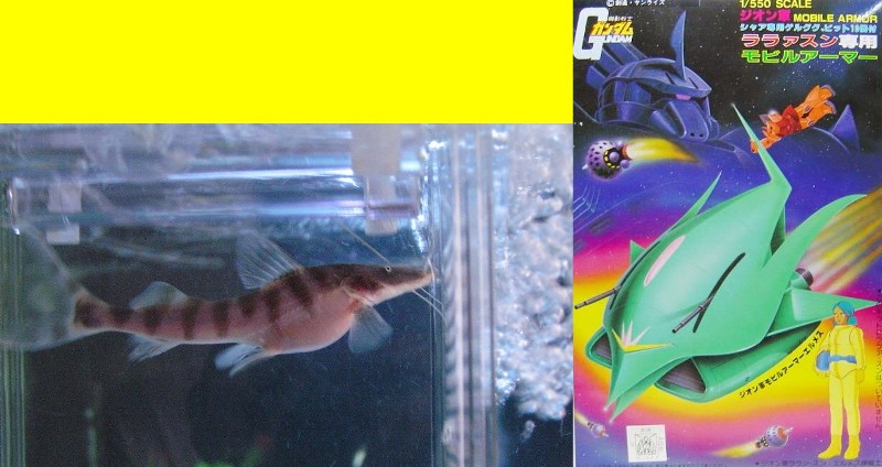 先行導入の±30㌢ゼブラは、その流線体型からジオン軍のモビルアーマーを連想させ、尾鰭のフィラメントが有線式クローアーム、顎髭が収納式サブアームに例え、アナベルガトー搭乗のノイエジールと命名しました♪