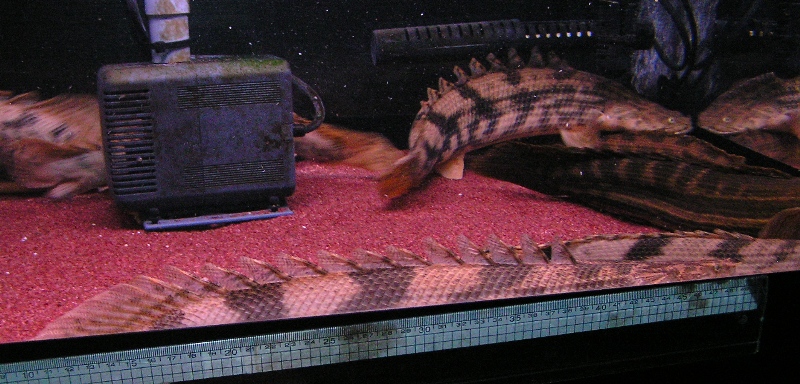 口先にぴったりスケールを合わせて撮影したのですが、片手にスケール、もう片手にカメラの強行撮影のせいか?水槽全面との遠近感の違いからか?スケールがややズレるように見えますが、鰭も含めた全長はぴったり測って50㌢!!.......と、言いたい所ですが遠近差を考えても49㌢と言った所です♪