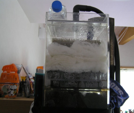 この一番上のマットが目詰まりしてしまうとオーバーフローしてしまうからです(バイパスを設けてあるので目詰まりしても溢れ出す事はありませんが♪)
