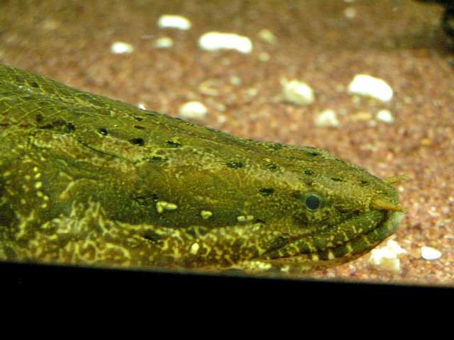 アジアアロワナも真っ暗な夜間は目が垂れてます。