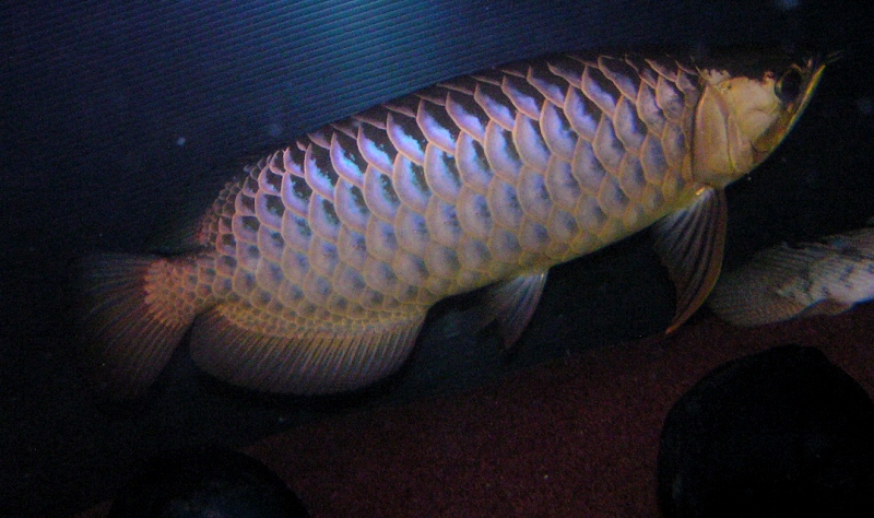 我が家の藍底守護神龍の売りは野生採取過背金龍のみで繁殖したというが、売り文句ですから、イイ風に解釈すれば純血に近い個体は鱗の内側の発色にも時間がかかるということでしょうか?