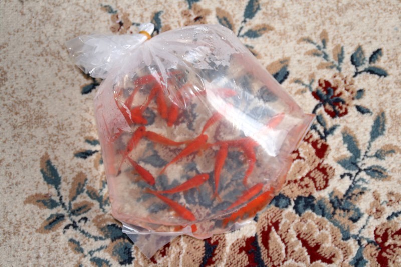 10匹買ってきた姉金を水合わせもなしに水槽投入 くぱぁ♪
