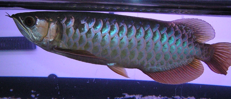 アスタキサンチンは紅系色素のイメージが強いですが、アスタキサンチンは人間のサプリメントにも用いられてる抗酸化物質なんで、アロワナの健康が上がれば発色も良くなるだろうという考えから藍底過背金龍に与えてますし、効果のある1週間程はは青がグンと濃くなります。