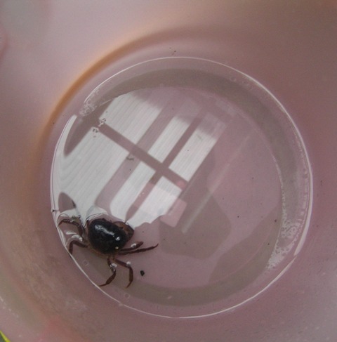 しかし、近くに川はありませんから、近所のだれかが川から採ってきたカニが脱走したか?捨てられてわが家にトコトコとやってきたんですかね?