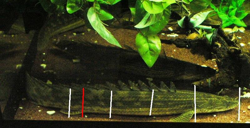 ポリプテルスでは赤、青、緑の部位のガノイン数、黄色は背鰭条数を数えて数値により種を区別してますが、アジアアロワナの場合、体色で区別できる為か?体側鱗列の数を数えるような事は行われないですね。