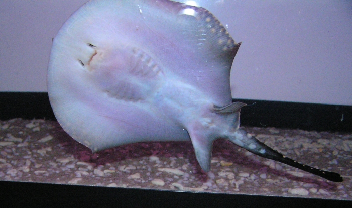 水槽内のエイの特異な行動として昇壁行動がありますが、水槽前面を昇る時に普段は見えないお腹側を見る事ができます♪