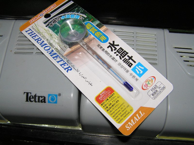 600育成水槽にはまだ水温計を付けてなかったので、水温の上昇と共にこれは付けなアカンな~って事で、日曜日に百均で買ってた水温計を取り付けもした。