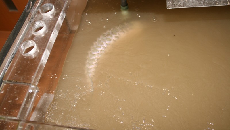 まるで現地ファームの養殖池やクレン川の様な水の色。