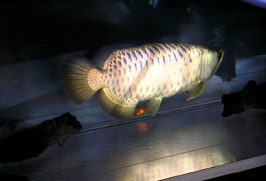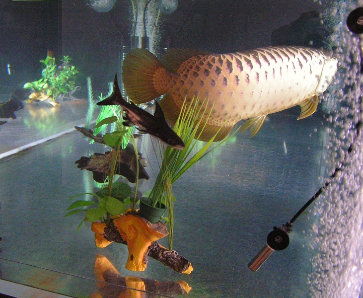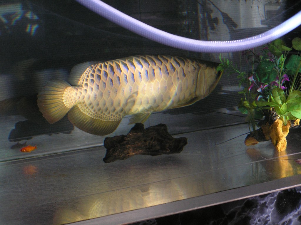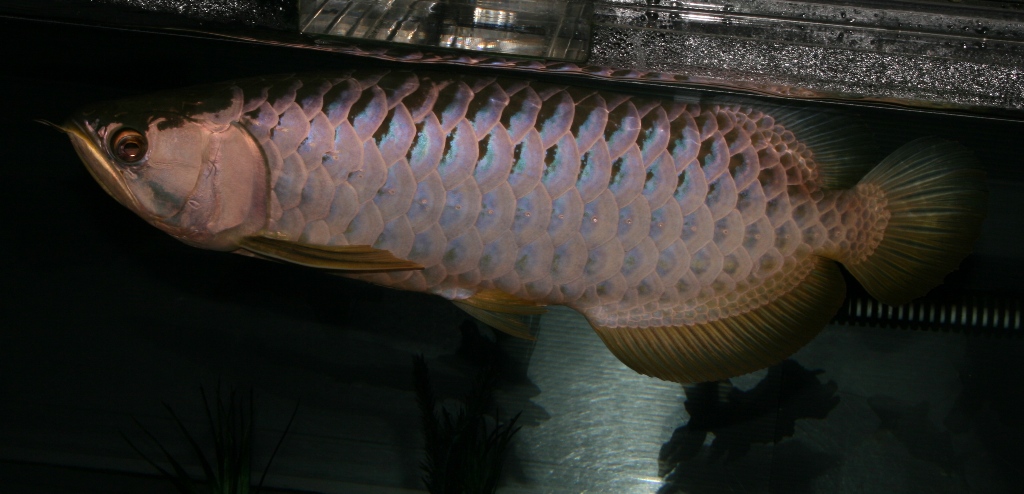 ですから、少し泳いではターンする事になってしまい、身体を伸ばして泳ぐこともままならない水槽ではこの龍魚がリラックスしてゆったり泳ぐ様を見ることできるのは横幅2400以上奥行き900以上の超大型水槽の特権といえるでしょう。