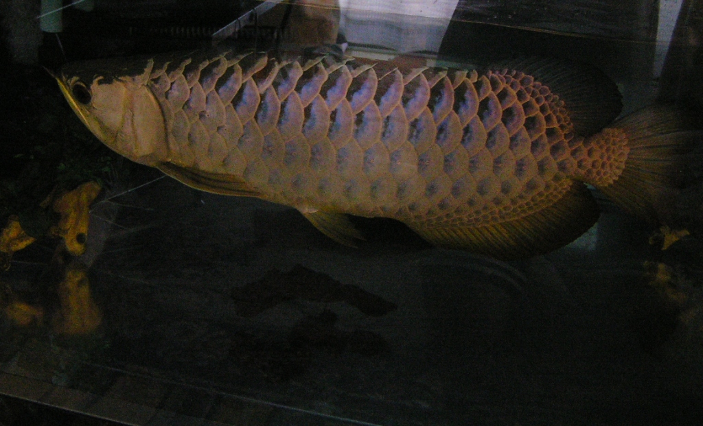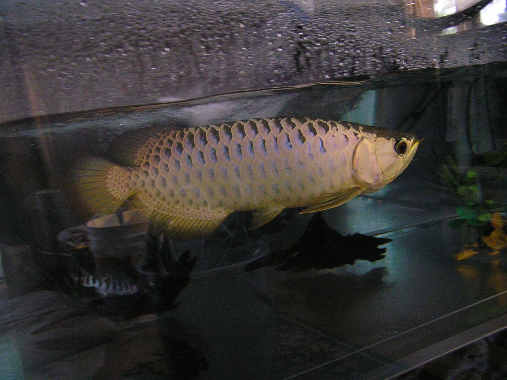 ラーメンショップイーグルにて飼育されてる15年物(今年に入り16年?)の過背金龍も上がりはお世辞にも良いとはいえず鱗底の埋まりも甘い、サイズは60㌢近くはありそうです。
