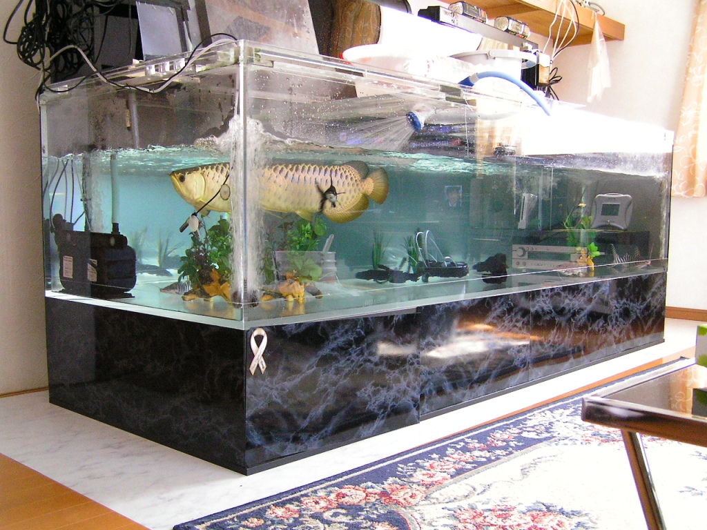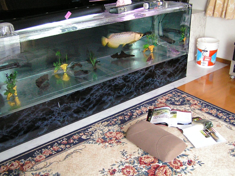 ワイルドブルーはてが届かないし、アロワニアに登場するアジアアロワナ大混泳スーパーマニアにはかなわないが、せめて水槽だけは負けないように(勝ち負けか?(笑)、2400重合水槽を揃えたのも若気の至りです(笑)