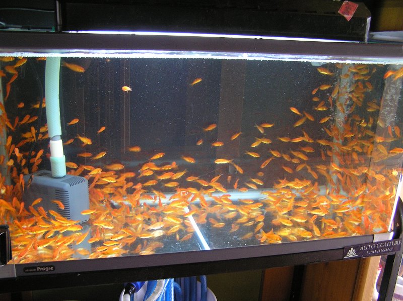 そういう訳なんで、残ってた小赤を2400水槽に全量投入しました。