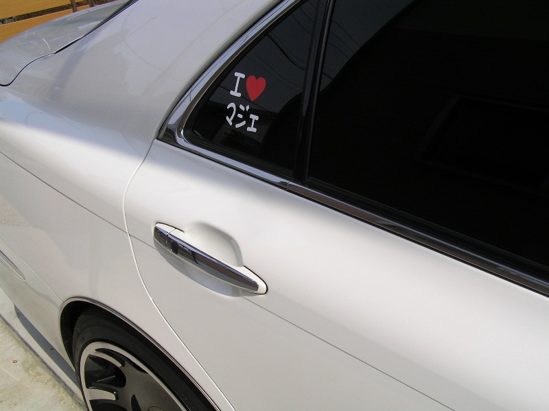 運転席側は一番人気のK-BREAk製のI♡まじぇステッカー♪