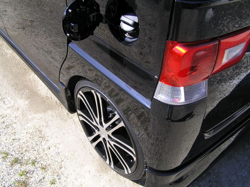 どうしてもフェンダーの折り返しの耳で合わせるので車高を落とし込むとツラウチになってしまいます。