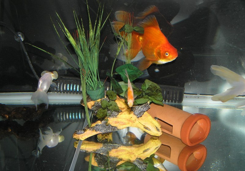 もう一つの人口水草の行方はこちらの金魚水槽。