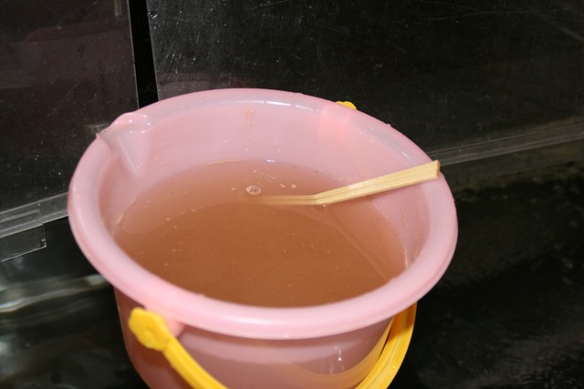 完全水溶性なんですが、溶け難い成分もあるのでたっぷりの飼育水で溶かします♪