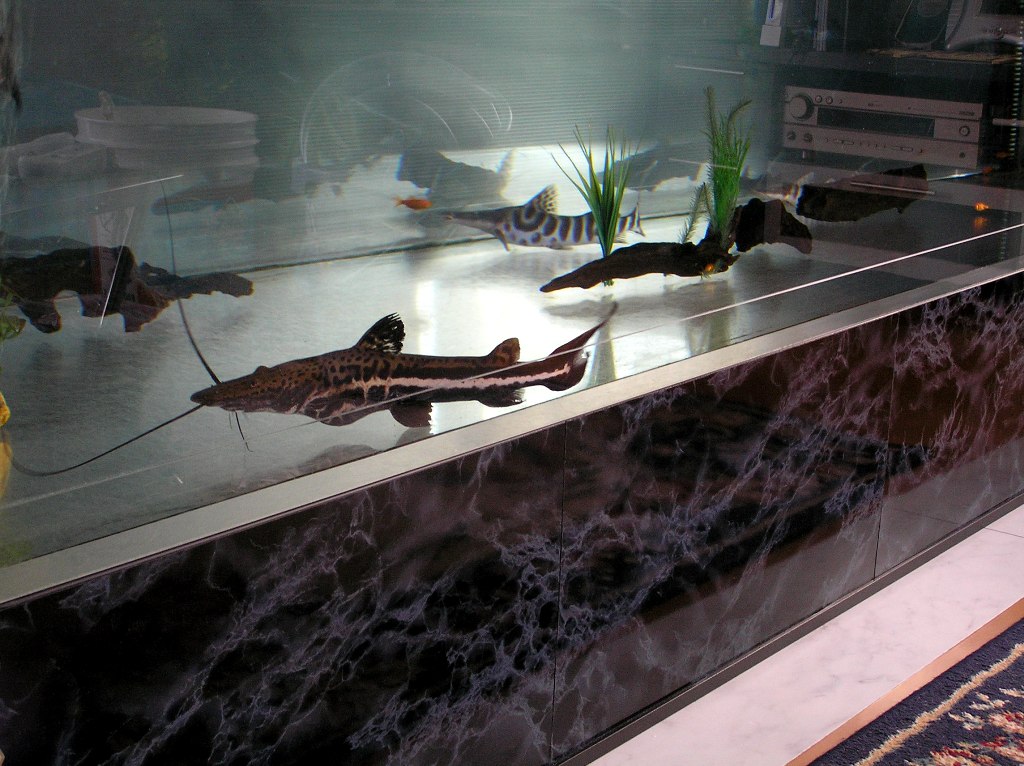 ナマズの居る右サイドの水がグリーウォーターってぽいのは、中古水槽なんでシリコン部に緑苔が付着してる為に水が緑に見えてしまってます。