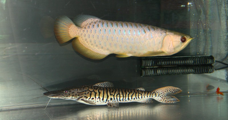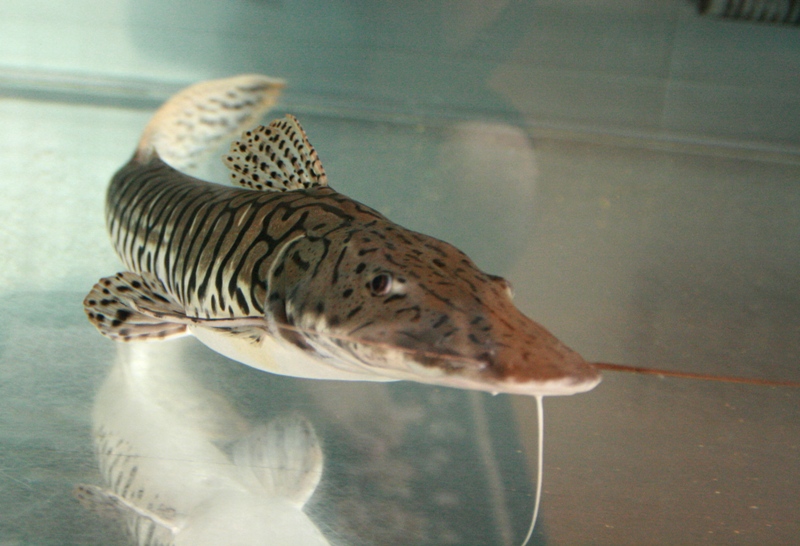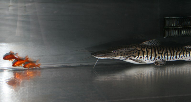 ナマズのタイガーショベルノーズも前に座るとノシノシ泳いできます♪