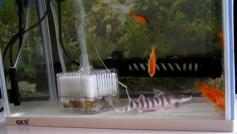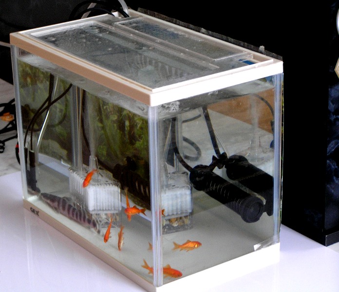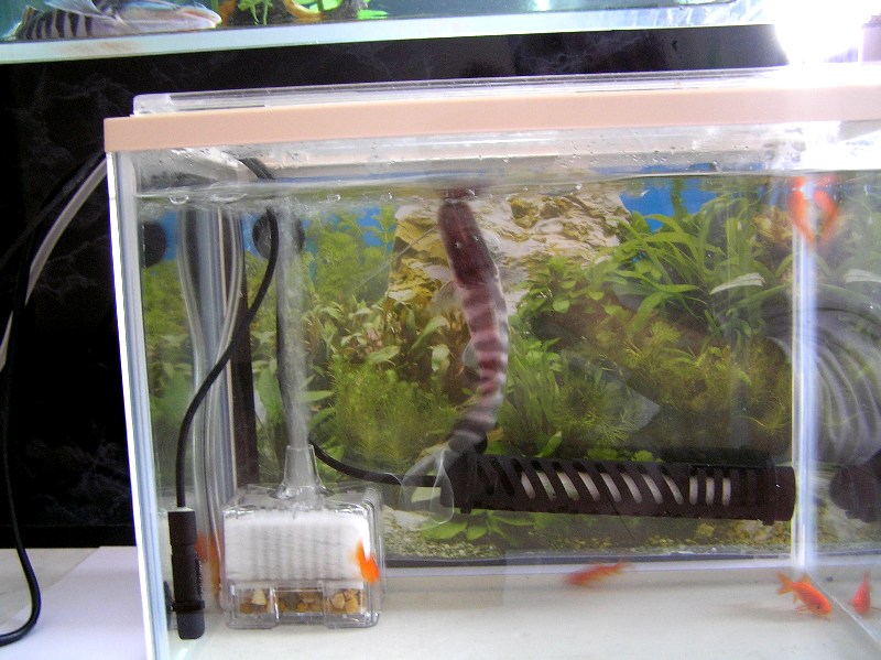 収容数は少ないですが投げ込みフィルターではさすがに肉食魚の濾過は賄いきれないようです。
