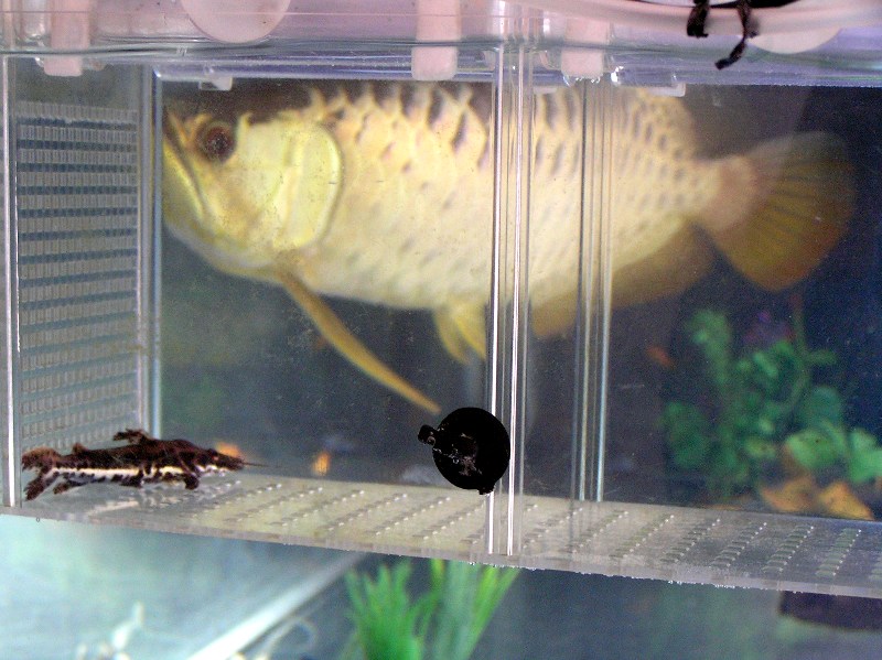 こいつは事前にキャットやむきエビである程度お腹を膨らませてから小赤を投入してます。