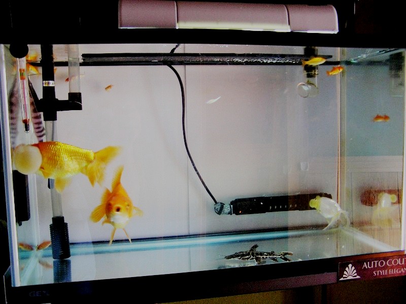 2400水換え中に金魚水槽にヒーターをセットして水を温めたんですが、それほど上がりもせずに水換えで温水を投入して生活水温まで挙げて投入♪