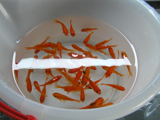 手持ちの金魚の餌に秘密の液体をかけて....