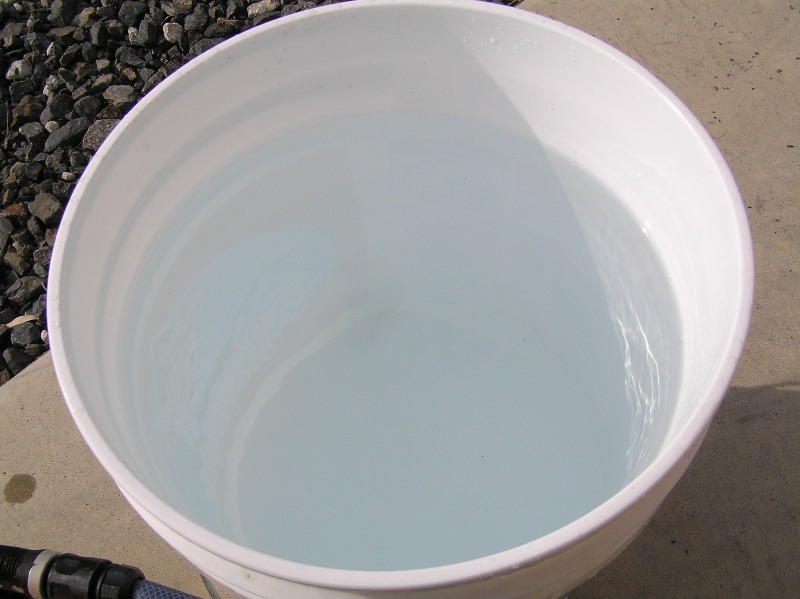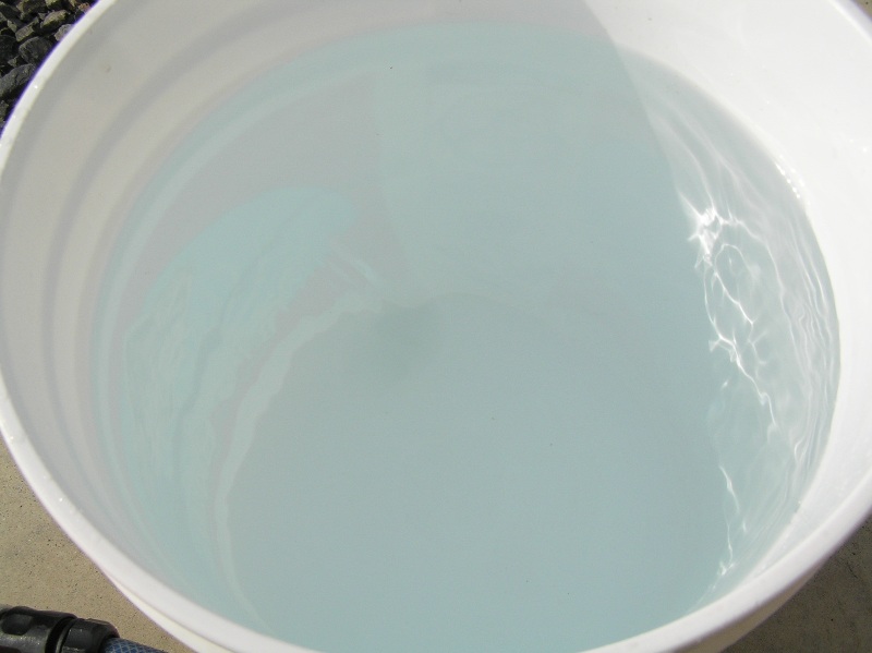 色のついたバケツだと気が付きませんが、白いバケツに入れると水色とは良く言った物で、水ってまさに綺麗な水色をしてます♪