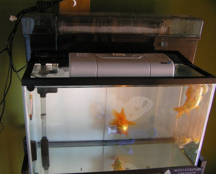 金魚水槽の水換えとマット清掃交換と...