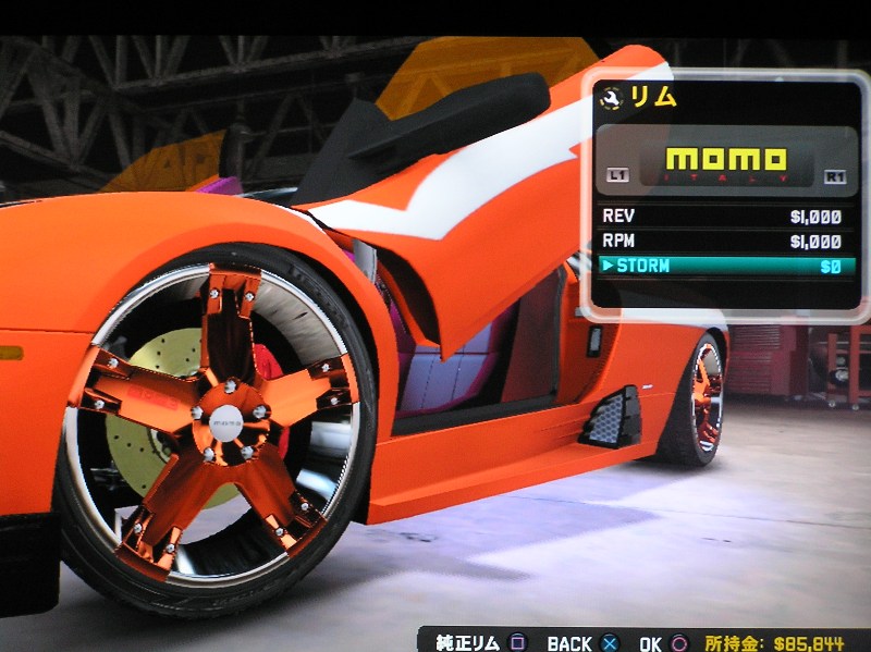 ゲーム中にはMOMOのSTORMというホイールも登場します。