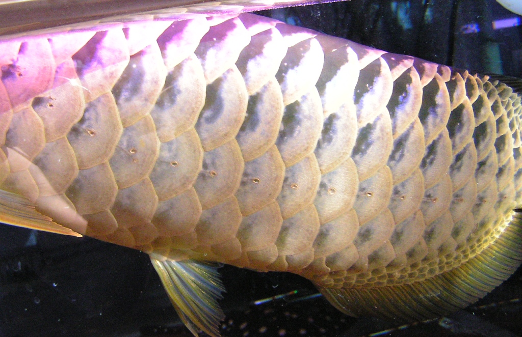 ブログでもたびたび触れてますがこの部分の発色が気になりだしたのは、アロワナ専門店ポンティアナの坂本氏が自身のHPや熱帯魚誌の記事なでで、過背金龍で鱗底部が発色してない個体は紅尾金龍の血が入ってると書かれた事が発端です。