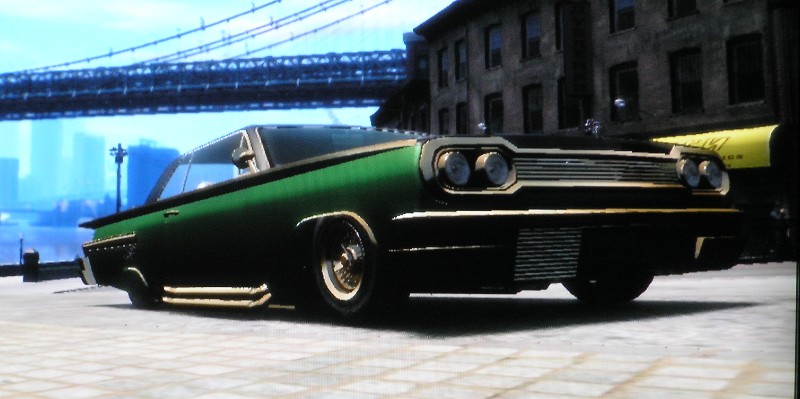 このゲームを始めた時にこの緑のLOWRIDERを見かけたんですが、ゲームの要領やセーブのコツも解らなかったんで普通のVoodooに乗りながら探してたんですが、ミッションで洗車場に行ったときにギャング2人に引きずり降ろされ(ミッションとは関係ない出来事)、見るとギャングが乗ってきてんたのが、この緑のLOWRIDER。