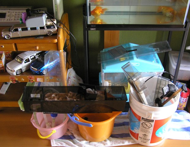 わが家で唯一のウエット濾過の金魚水槽の大掃除が残ってました!!!