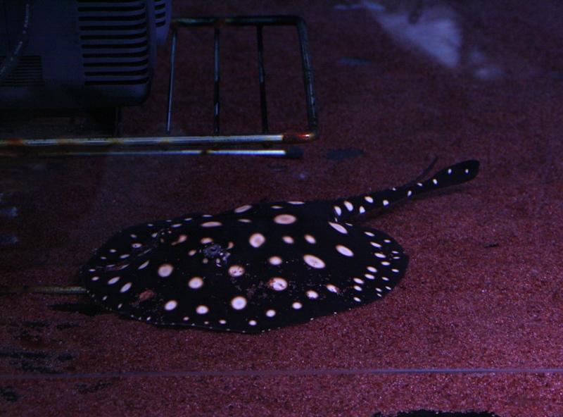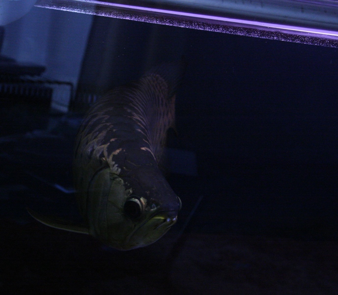 コイツも来てから3年以上経ってますが、まだ水槽前面からスケールを当てて測った目分量で45㌢程度から成長してません。