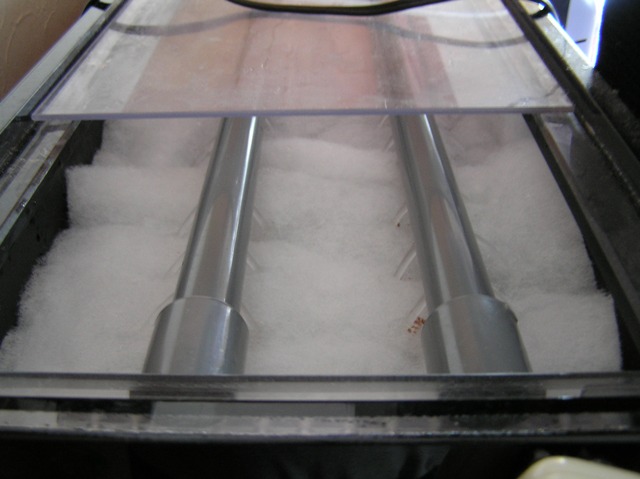 フィルター内の排水水流の為にポンプ付近の水が一番良く出る様にシャワーパイプの穴を開け直してますので、それでパイプ先端の水の出が弱くても納得してたのかもしれません。