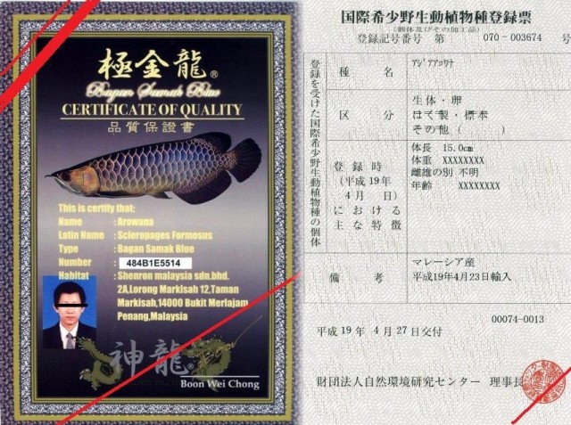 この2枚の証明書もポリプを引き取ってもらった時に一緒に渡せばよかったのですが、アロワナと違い大した意味もないので忘れてました(笑)
