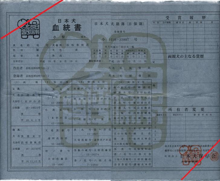 血統書では鈴竜号という立派で勇ましい名前が付けられております。