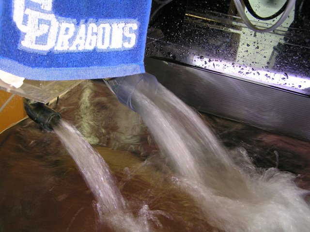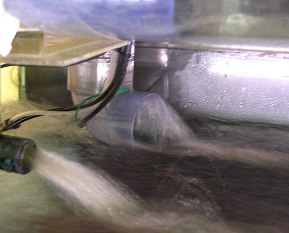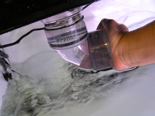 これも以前紹介してますが、水換えの時にフルドライフィルターの排出口を押さえフィルルター内に水を貯め、ある程度貯まったら一気に放水します.....と同時にポンプの電源もオフ。
