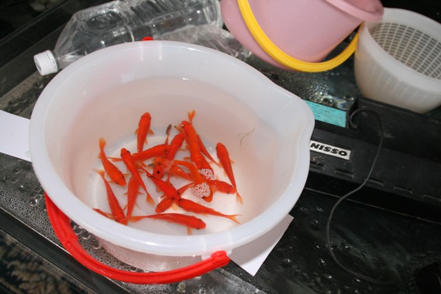10匹買ってきた姉金を水合わせもなしに水槽投入 くぱぁ♪
