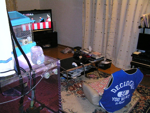 この座椅子に被せて有る季節外れのタンクトップは水換え時に使用してる物です♪