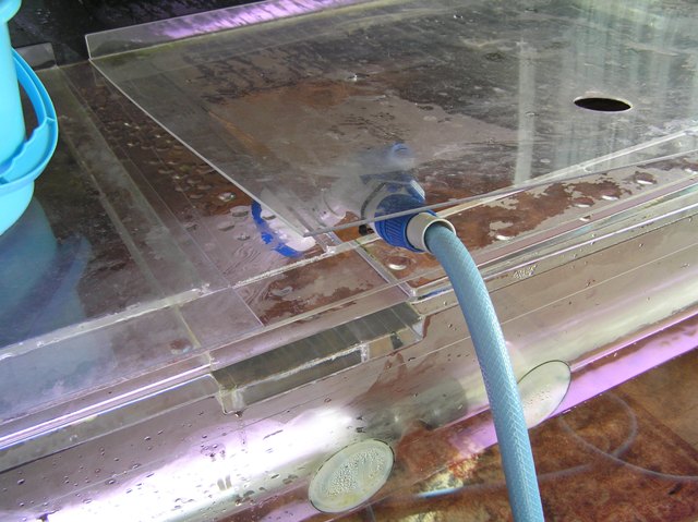 注水時は水槽中柱フランジとポリカ蓋で、この状態でロックさせてるんですが、何かの拍子でロックが外れる事があり外れると部屋に水が散乱することとなります。