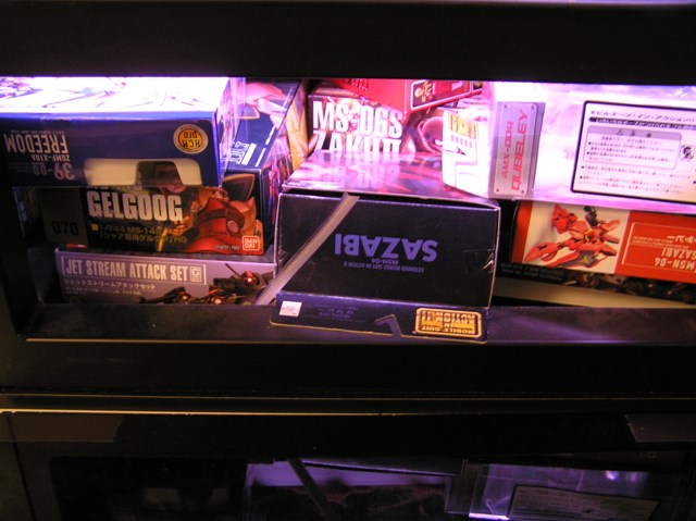 私、去年突如としてガンダムに嵌りまして、DVDやらフィギア等を集めだしたんですが、その不フィギアの箱を2400水槽のラック内に収納してたんですが、箱を入れる時にラック内がライトアップされてるのに気が付きました!!