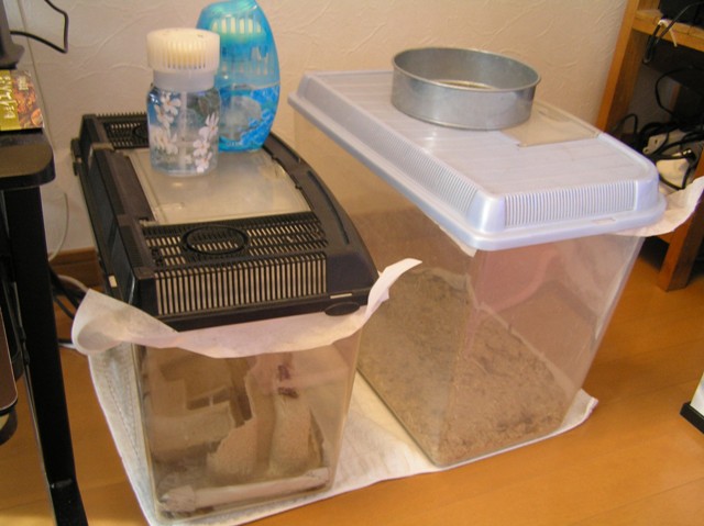 脱走用の為に水槽部屋にはゴキブリホイホイが仕掛けてありますが、未だにコオロギは捕獲されてませんので(勿論ゴキブリも...)、注意して与えてるので、脱走は無い様です♪