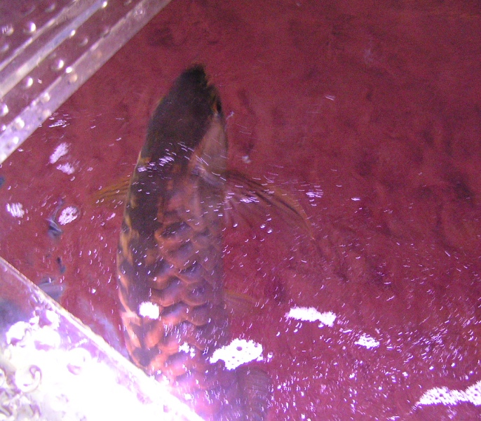 そして、その光が金の浸食を促進されるとされ、藍底過背金龍は黒水槽での飼育が推奨されております..........が!!
