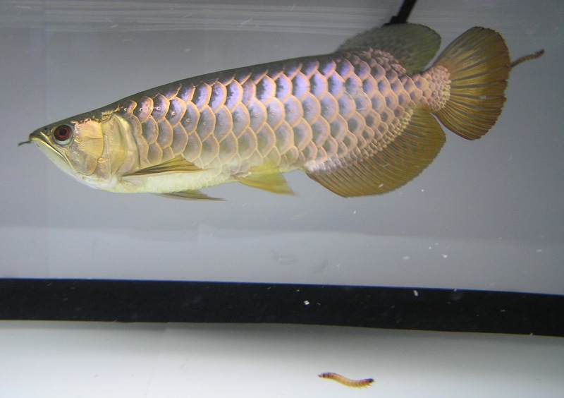 話しは又餌の話しに戻りますが、今日じっくり観察してみると、新入り藍底過背金龍の鱗の光沢も増してる気がしました。