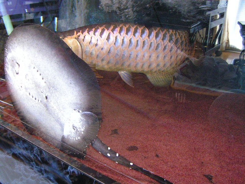 我が家には藍底過背金龍2匹、黒系淡水エイ3匹。色彩変異ポリプテルス2匹がいます♪