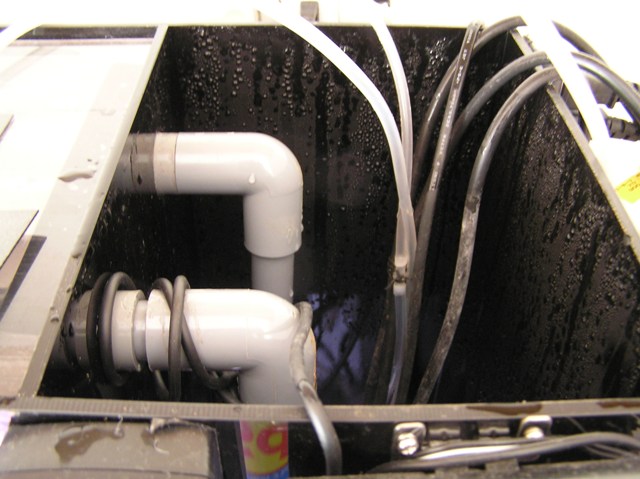 水槽内のポンプの配管が外れても、上には水槽蓋や上部フィルター等があるので水槽上部に噴水の様に噴き出す事はまづ無いのですが、フルドライ上部フィルターのこの配管だけは怖いです!