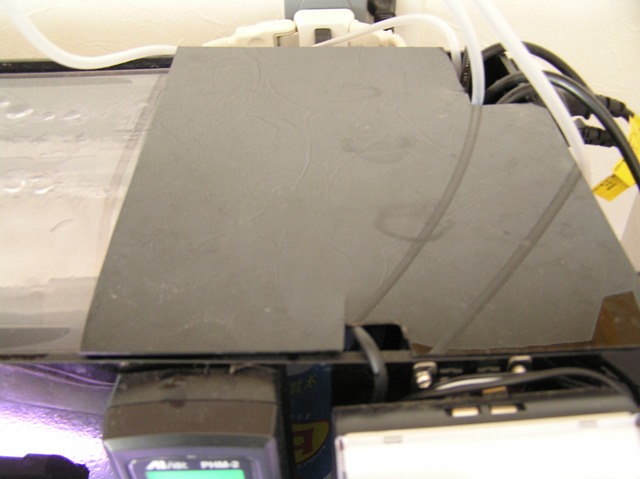 それでも、留守中万が一の事もありますので、フィルターのポンプ部分の開口部にアクリル板をカットして蓋をしてあります。