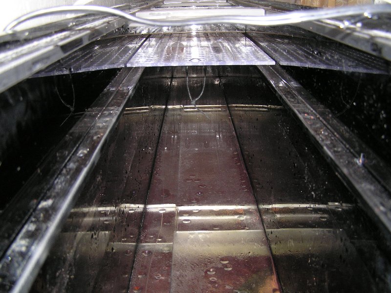 このドライフィルターは完全オリジナル設計ですので、濾過槽も底面は完全フラットでポンプを停止すれば濾過槽内の水は全て排出されます。