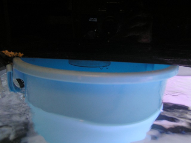 濾過槽内のヌメリを取る方法は、まづは排水部下にバケツを設置します。(浮力で固定されます)