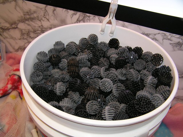 濾過槽にヌメリがあるという事はドライボールにもヌメリがあるという訳で、水ですすぎました。